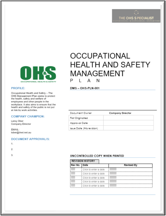 Templates are available for Integrated Management Plans aligning with your specific Company requirements including all supporting OHS documents for ISO accreditation or any other specific business needs.